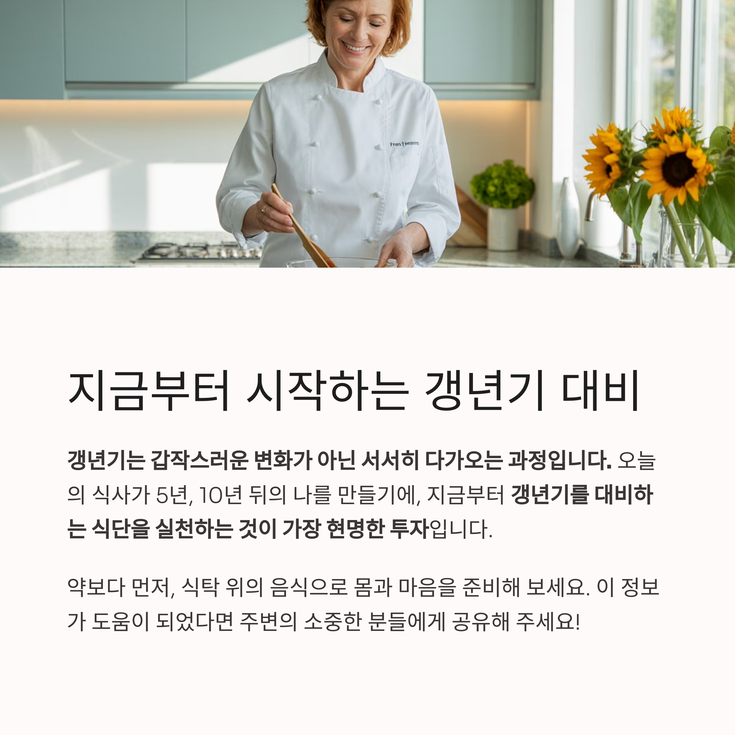 결론: 식단이 갱년기 준비의 첫걸음이다