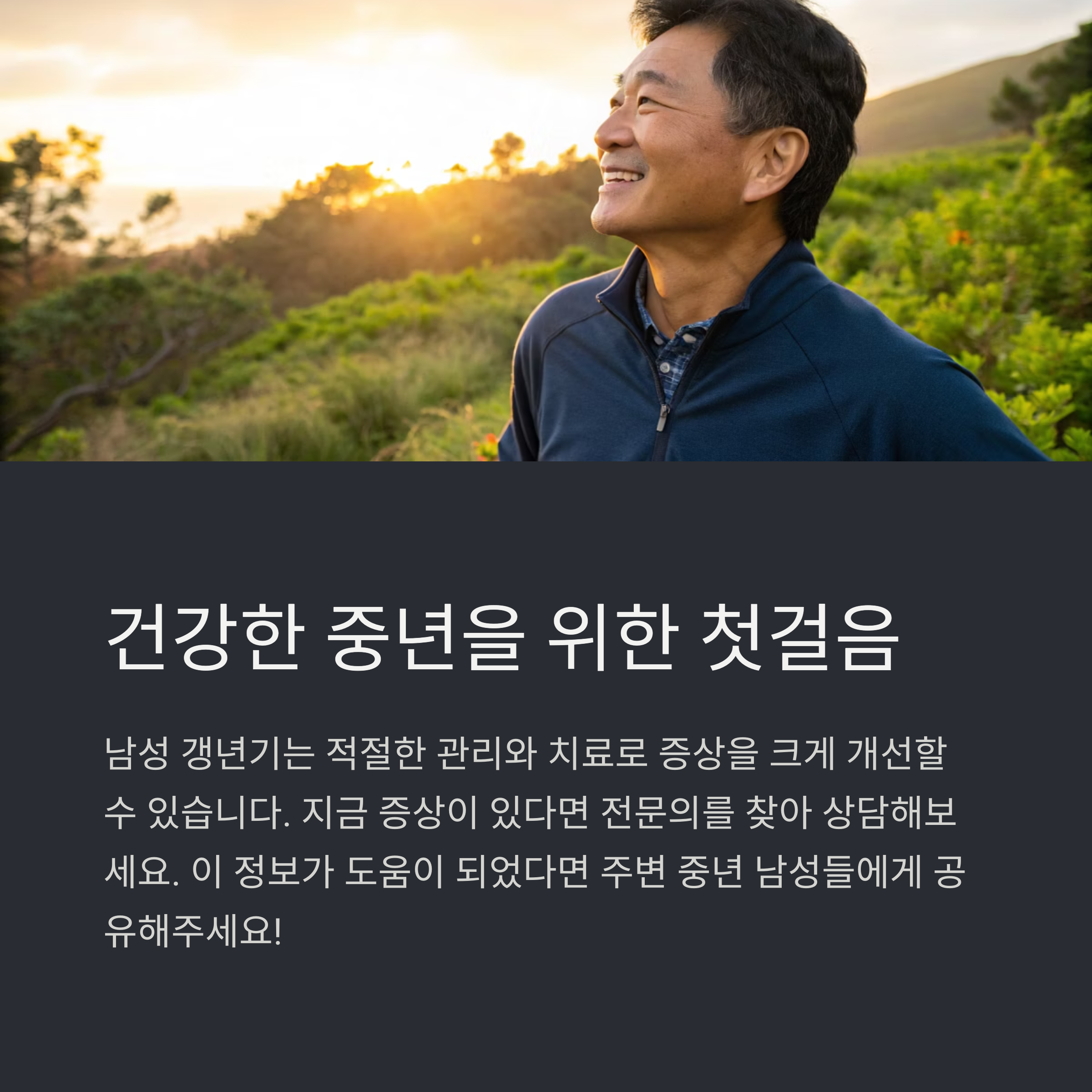 이 글에서는 남성 갱년기의 정의, 주요 증상, 진단 방법, 치료와 관리법까지