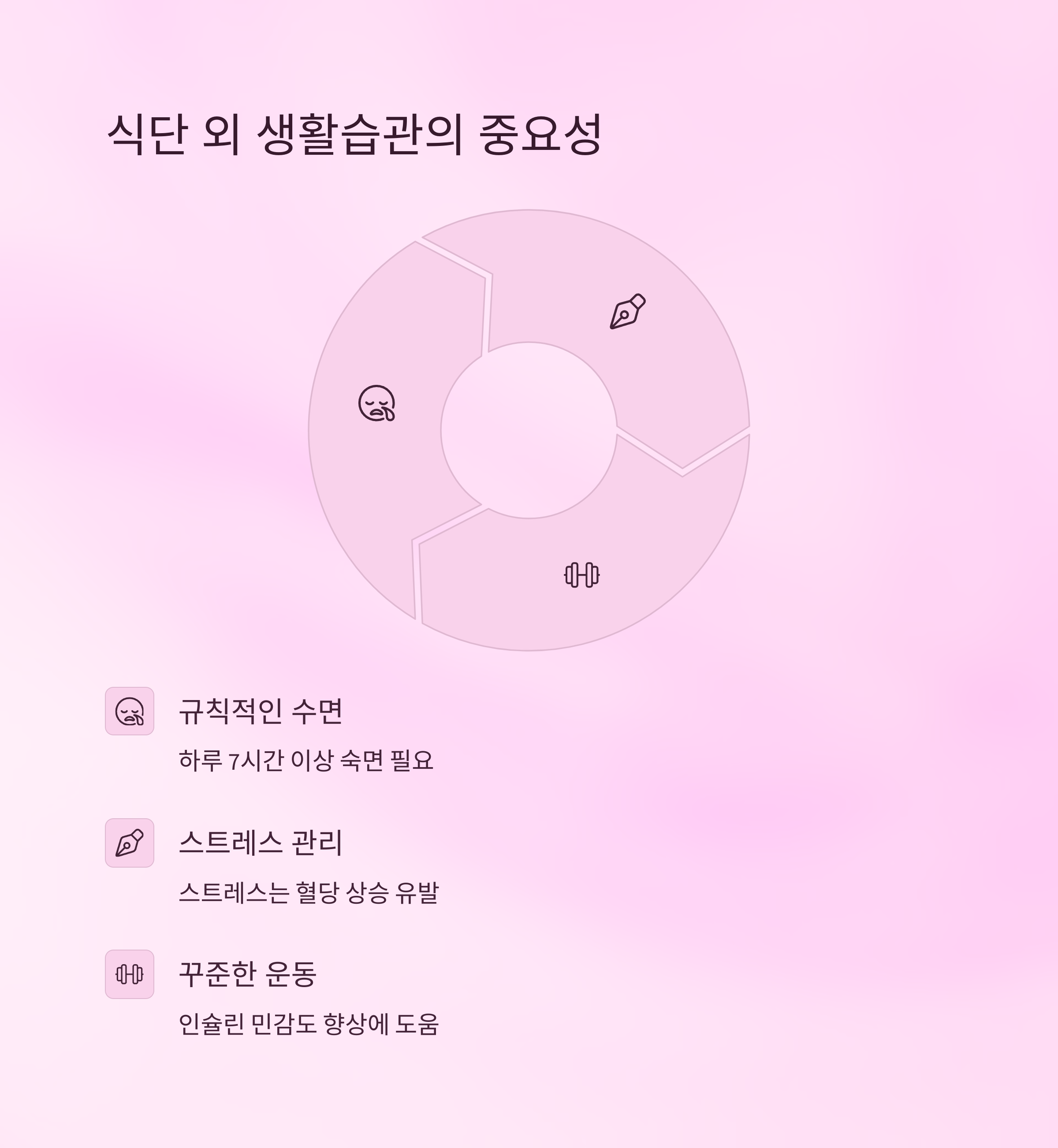 규칙적인 수면, 스트레스 관리, 꾸준한 운동은