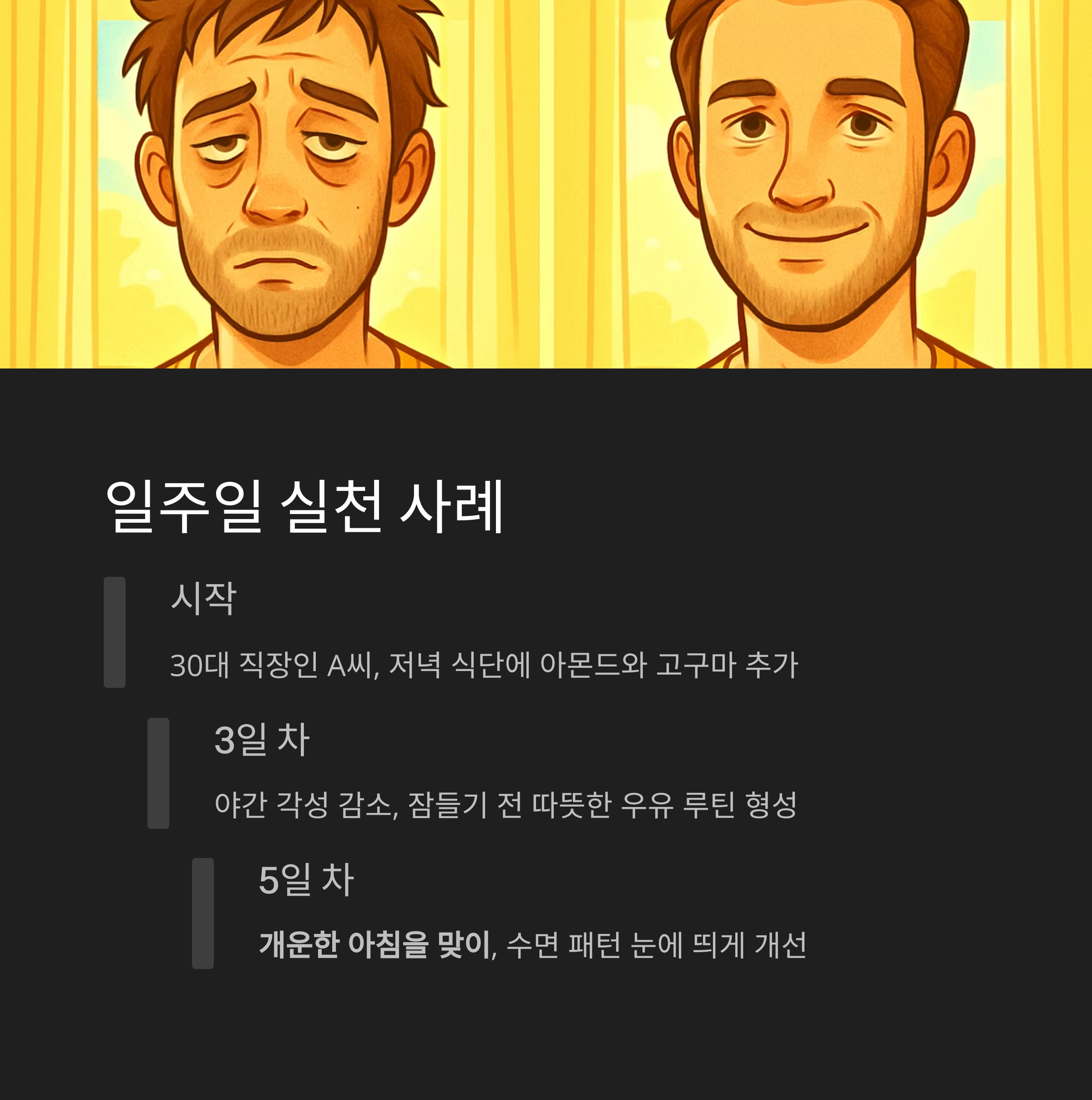 "수면에 어려움을 겪던 30대 직장인 A씨는 저녁 식단에 아몬드와 고구마를 더했고,