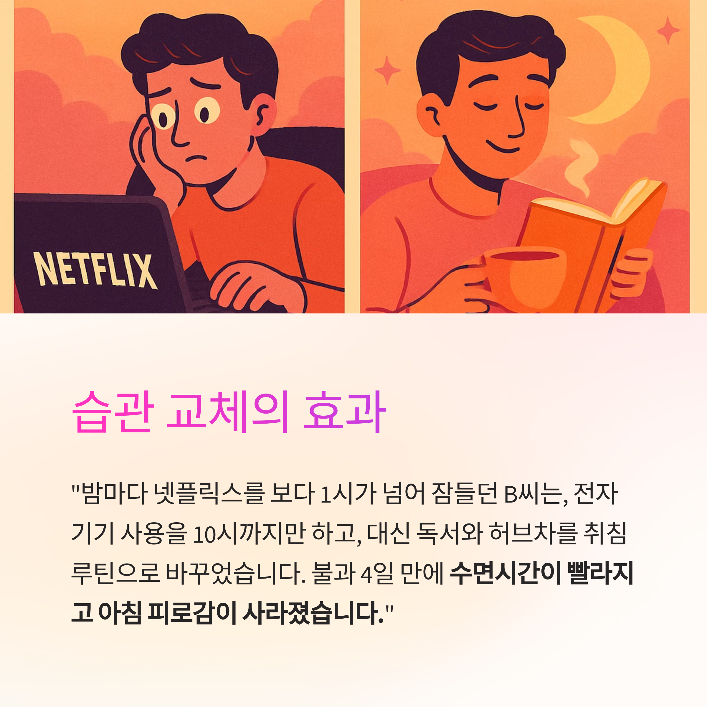 작은 변화가 숙면으로 이어진 실제 사례입니다."