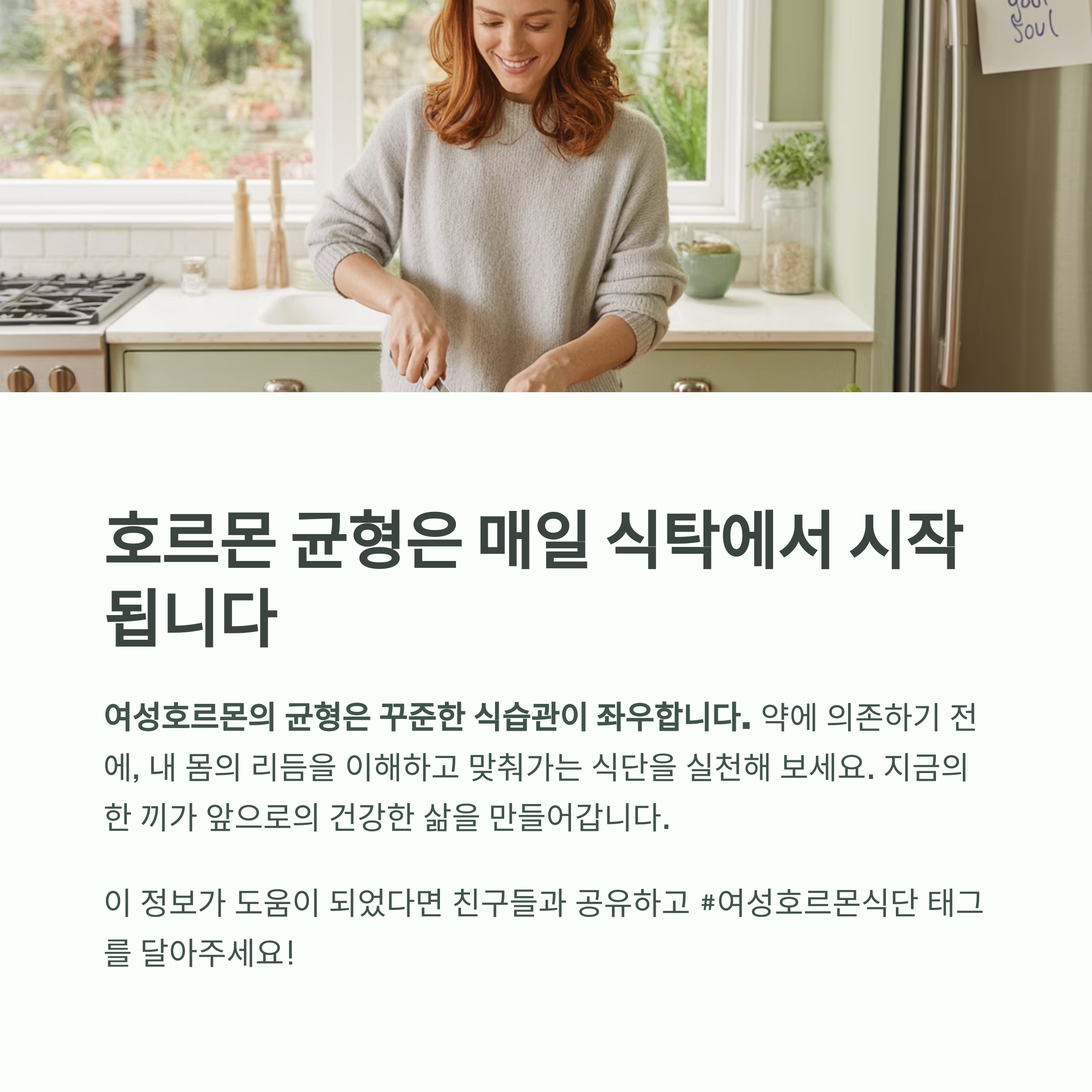 호르몬 균형을 돕는 식단을 유지하는 것은 몸의 리듬을 회복하고 건강을 지키는 데 매우 효과적입니다.
