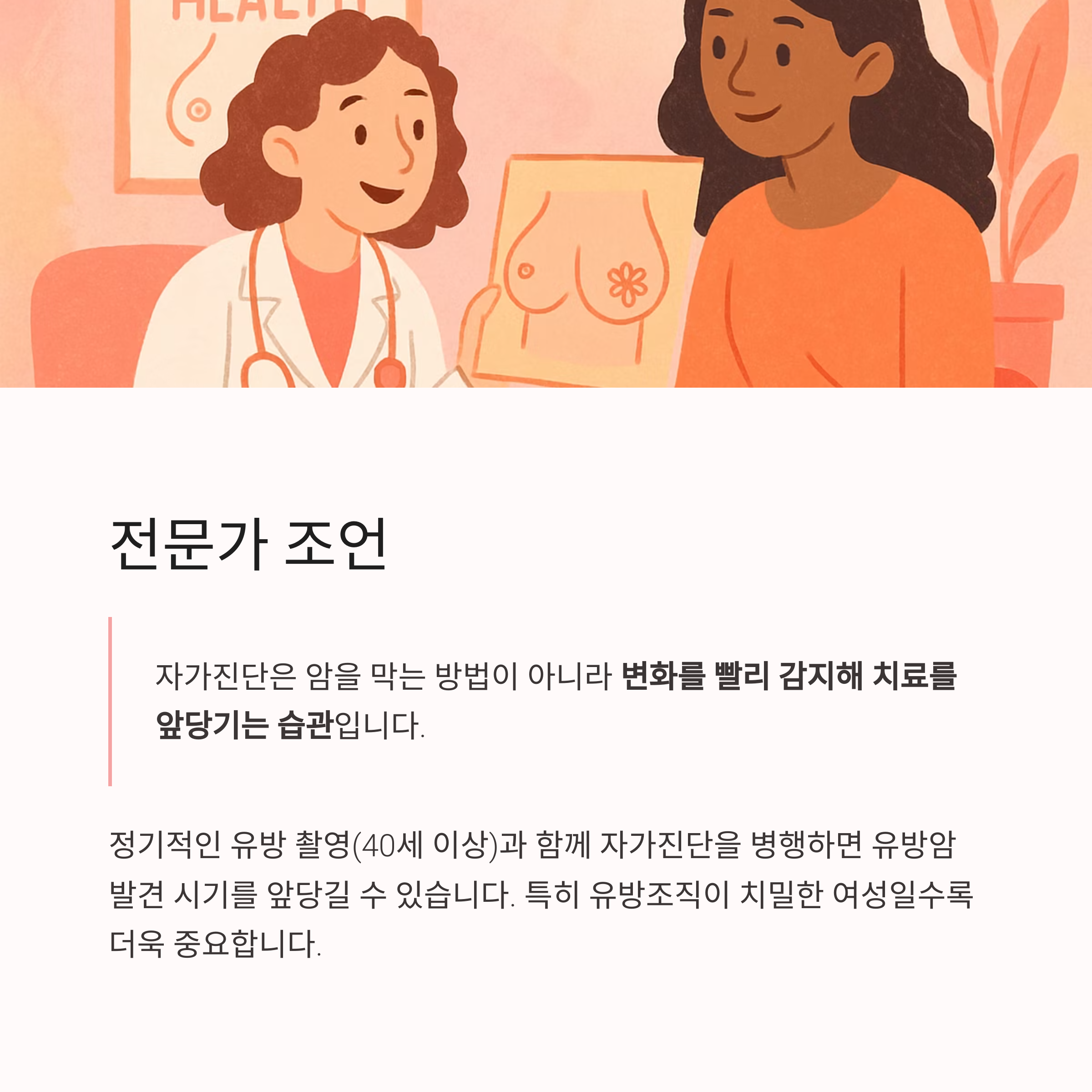 전문가 조언: 자가진단은 예방이 아닌 조기 발견입니다