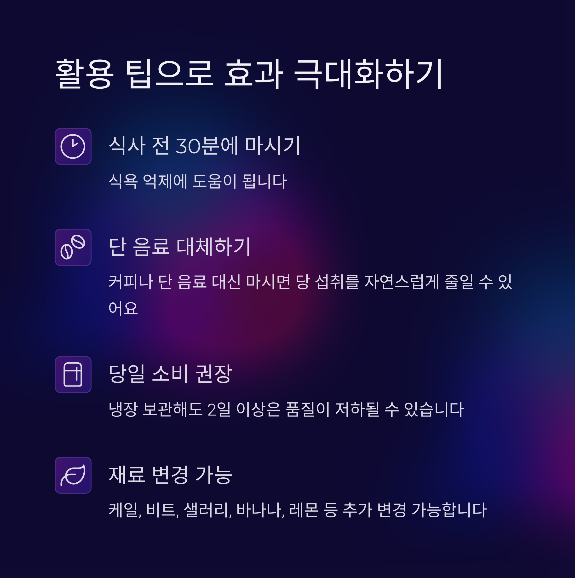간단한 해독주스 습관만으로도 컨디션이 놀랍도록 달라질 수 있습니다.